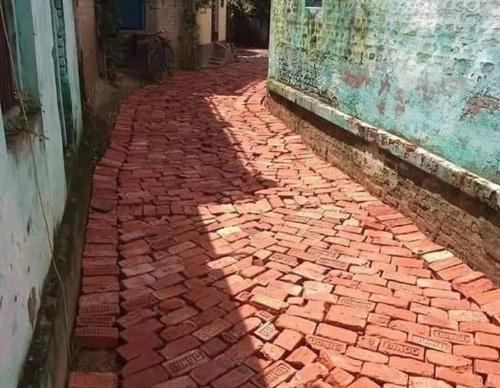 Вот так и выглядит дорога, мощенная кирпичом, по версии современных горе-строителей