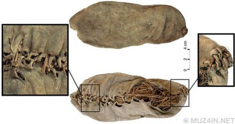Внутри башмака находилась трава, которая, возможно, использовалась для поддержания формы обуви, пока она не носилась.