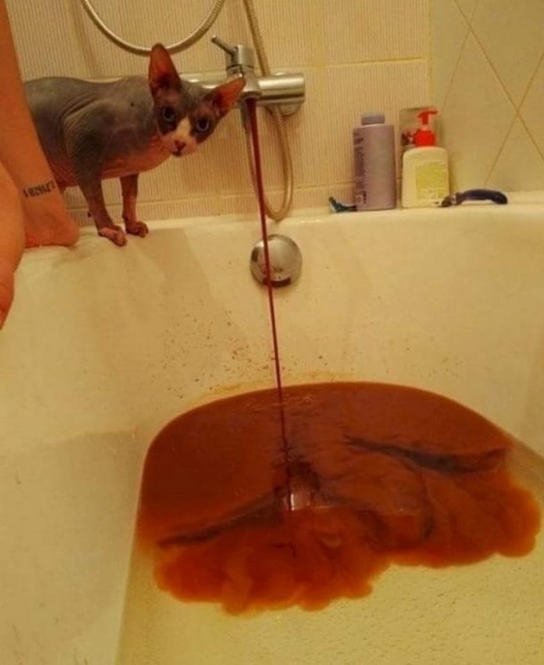 Так хотелось расслабиться в ванной, даже кот не понял, что же пошло не так