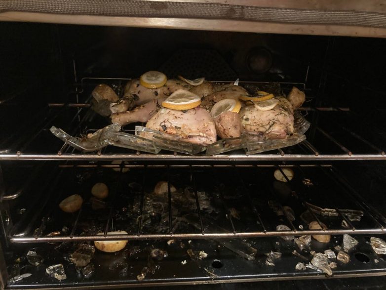 Муж плеснул холодный бульон на горячий стеклянный противень с цыпленком. И остался без ужина.