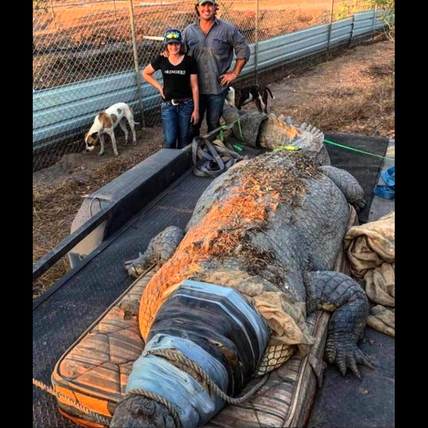 Размер крокодила, поедавшего домашний скот, который был пойман в Австралии