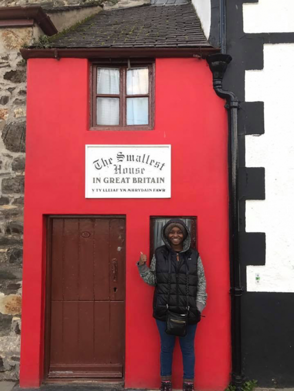 Девушка ростом 152 см стоит на фоне самого маленького дома в Великобритании