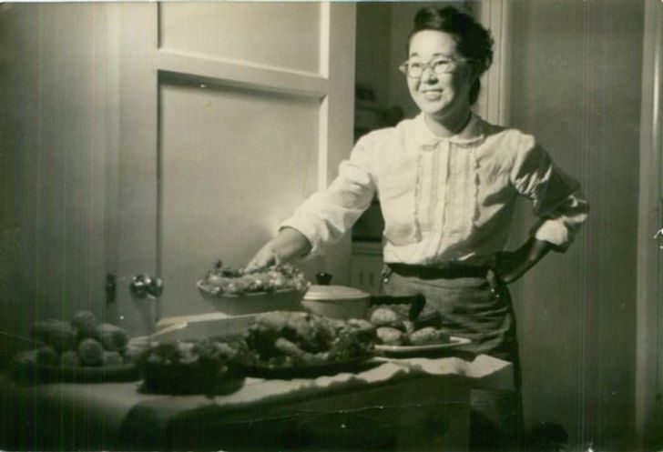 Пятьдесят лет назад бабушка работала официанткой. Дедушке очень не нравилась рабочая одежда, но приходилось обслуживать клиентов в таком виде.