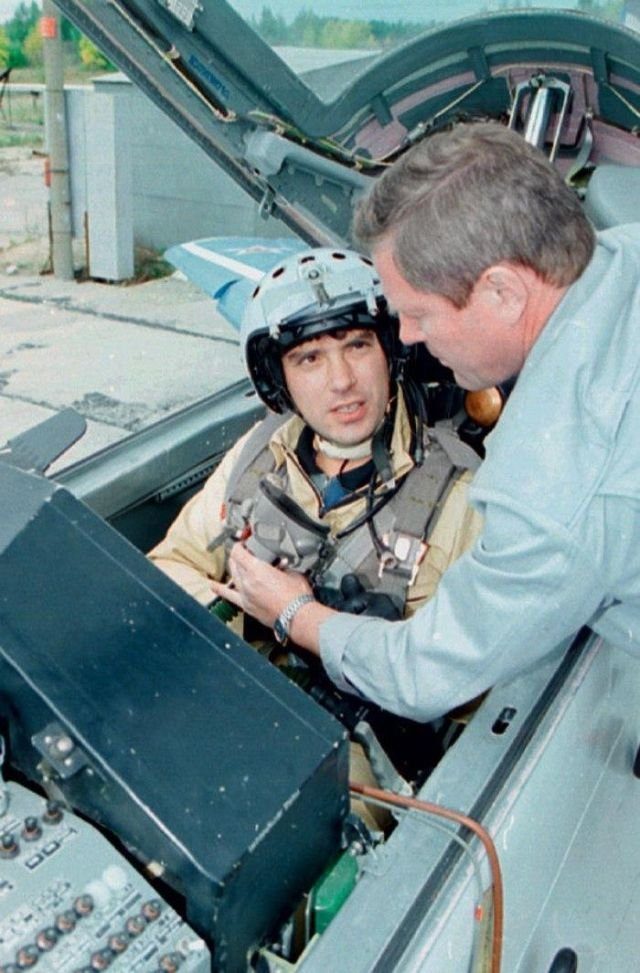 Губернатор Нижегородской области Борис Немцов готовится к своему 35–минутному полету на истребителе МиГ–29, Нижний Новгород, 1996 год.