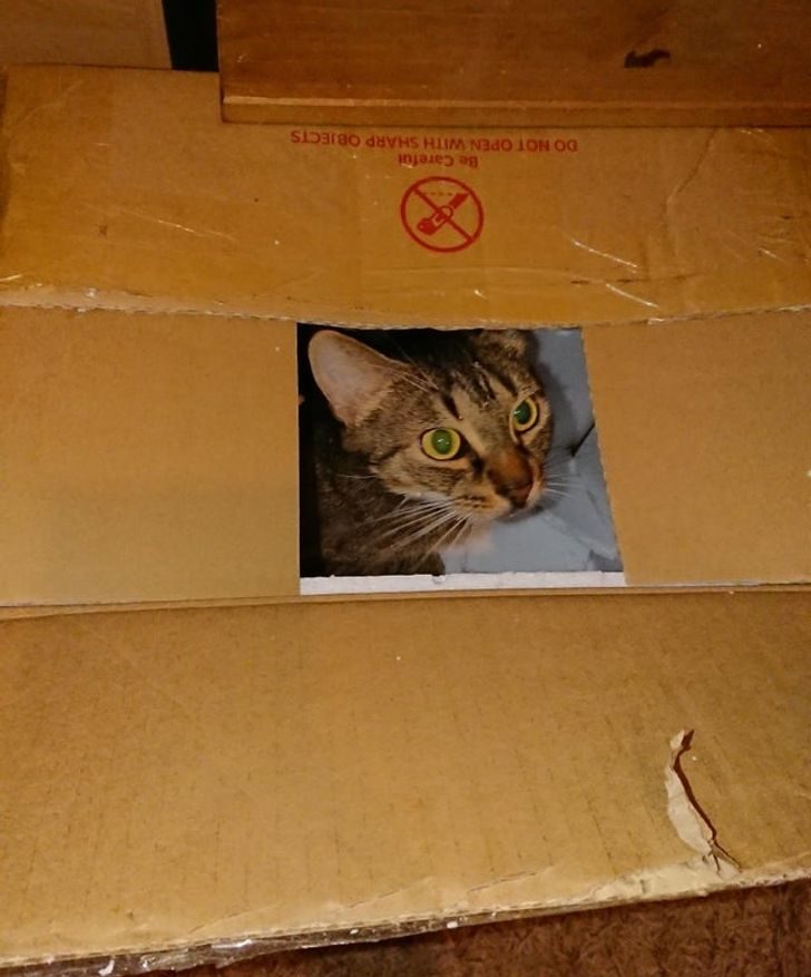 Это не снимок котика в стиле полароида, а обычное фото с дыркой в коробке