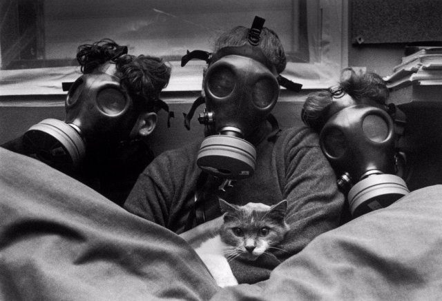а че котейке не надели противогаз? ))