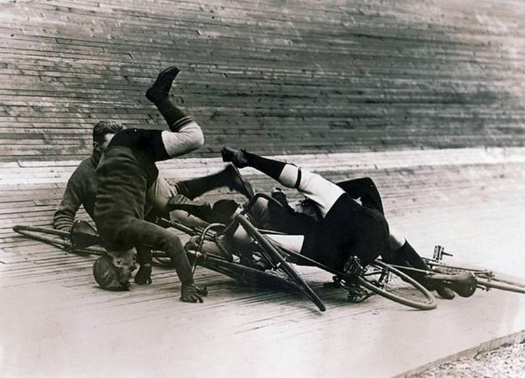 Падение на трассе во время 6-дневной велосипедной гонки на велотреке в Мэдисон-сквер. Нью-Йорк, 1913 год