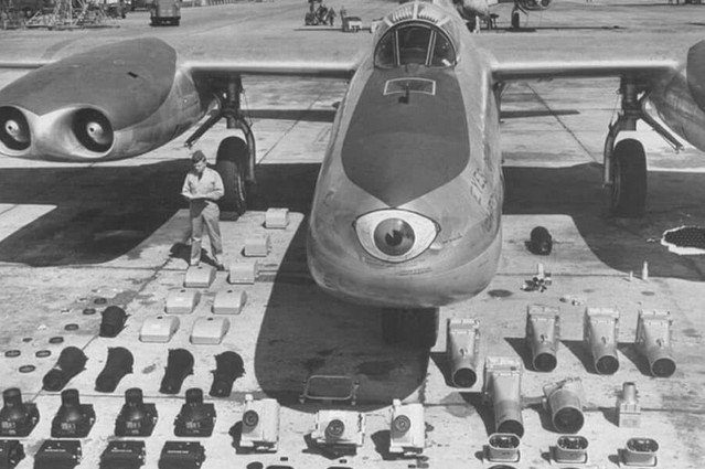 Разведывательный самолет RB–45, 1951 год, США. — на земле камеры