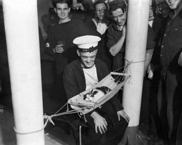 Кот в гамаке, кошачий член команды матросов. 1941г.