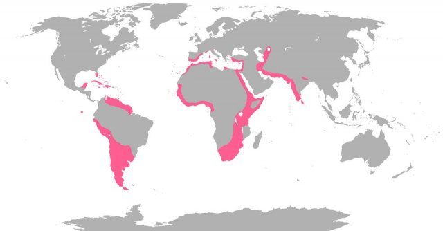 9. Розовым отмечены места, где живут фламинго