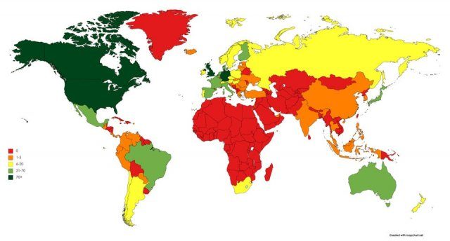 Зеленая часть карты — нужно разуваться, красная — обувь можно не снимать.