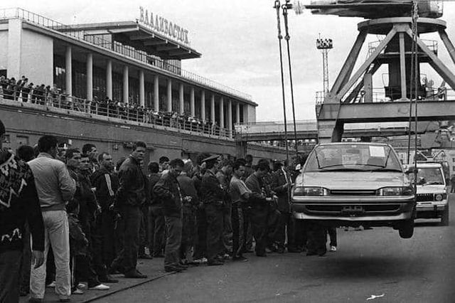 Разгрузка машин с Японии во Владивостоке.