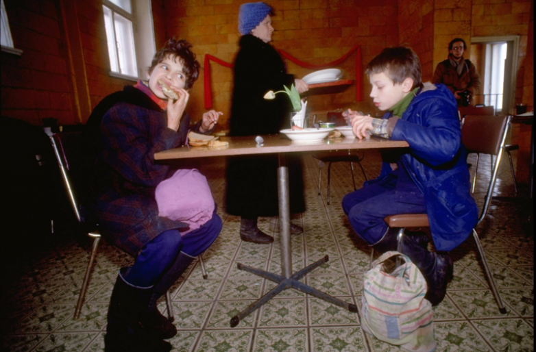 1992. 19 февраля. Дети едят бутерброды с продукцией компании Delmonte. Начались поставки продовольственной помощи ЕЭС