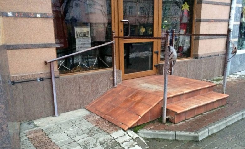 Арматурина надежно преграждает въезд на крыльцо по пандусу