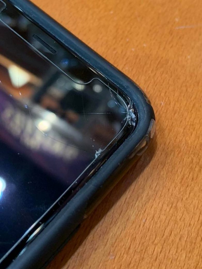 Выронил телефон, удар пришелся как раз на незащищенное место