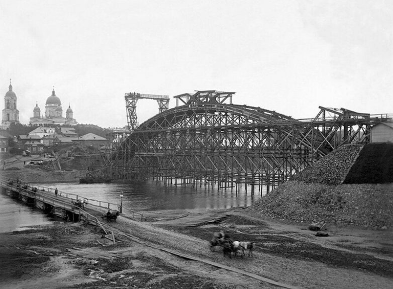 Строительство первого в России арочного моста по проекту профессора Белелюбского, Боровичи, 1904 год