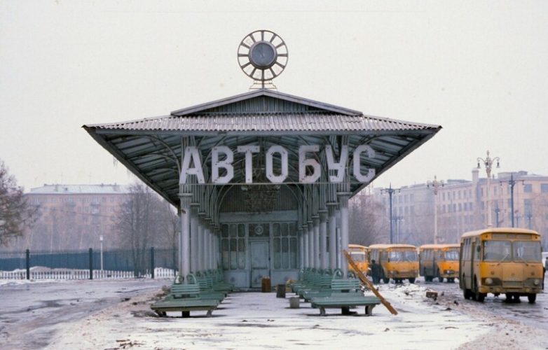 Автобусная станция в районе ВДНХ, Москва, СССР, 1980-е