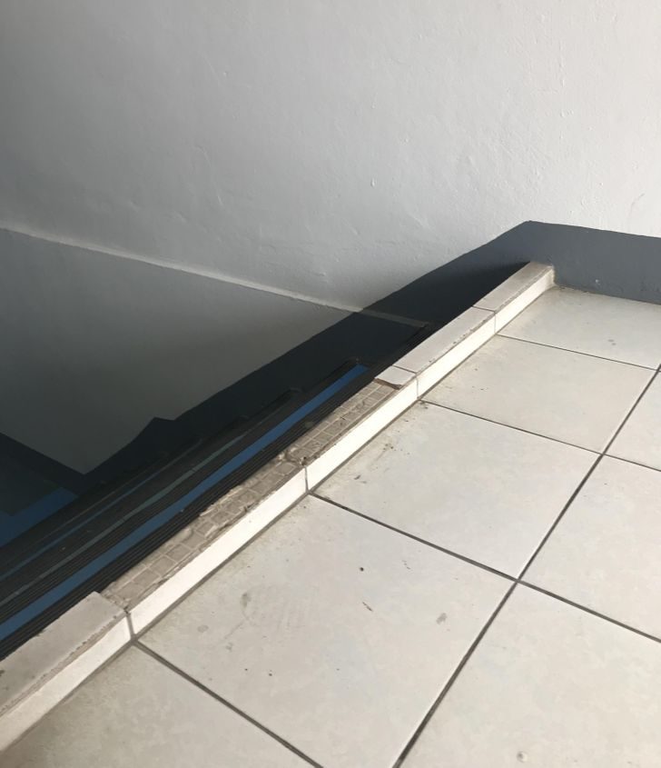 Порожек этот для убегающих грабителей, чтобы ласточкой летели над маршем лестницы накапливая в полёте энергии для удара о стену головой.Ловушка как в египетских пирамидах.