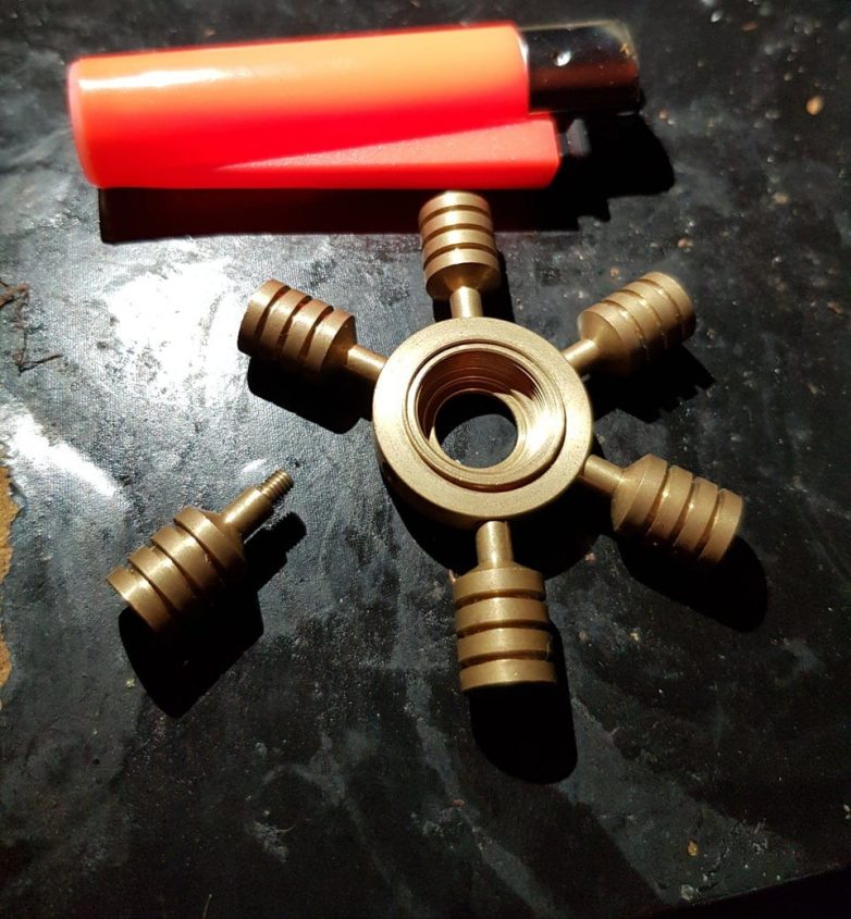 “Все шесть рожек откручиваются от кольца. Материал – латунь.”