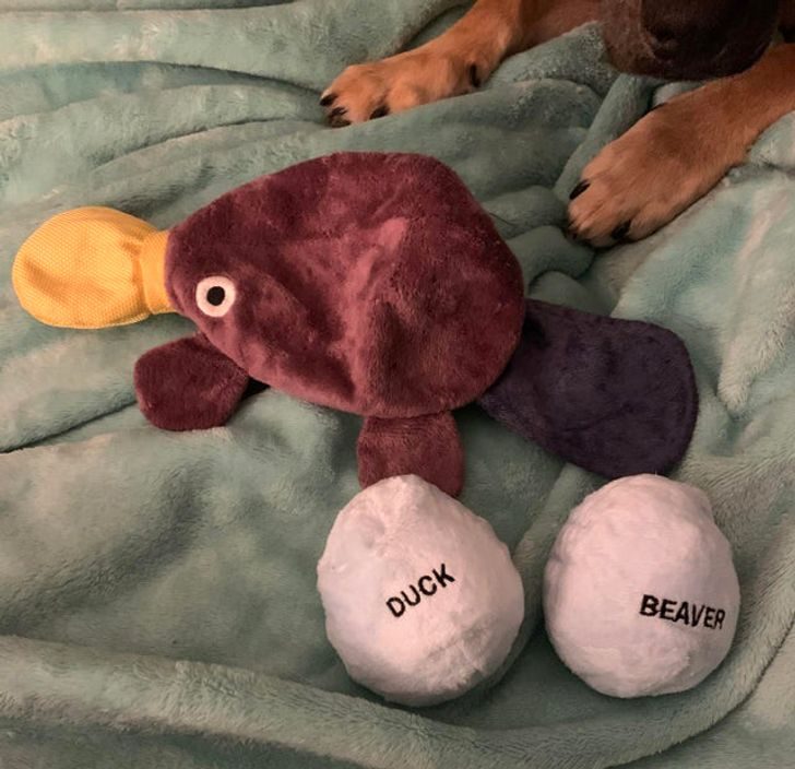 Внутри игрушки в виде утконоса были два наполнителя «Утка» и «Бобер»