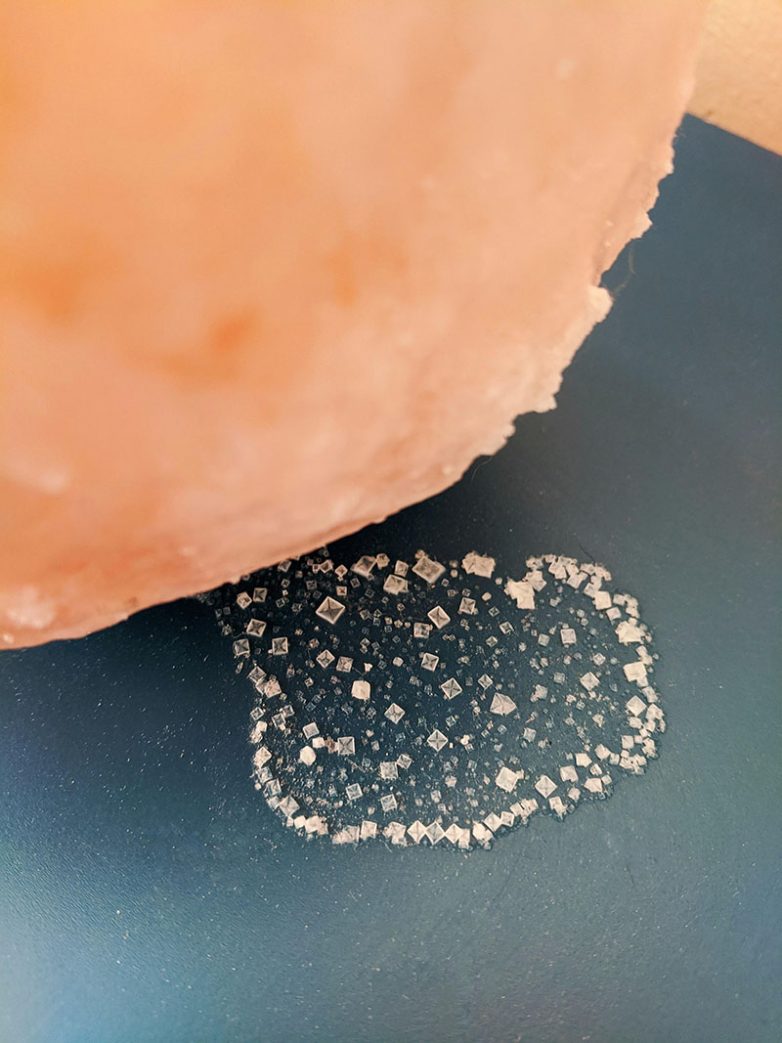 Соль под солевой лампой выглядит как идеальные квадратики