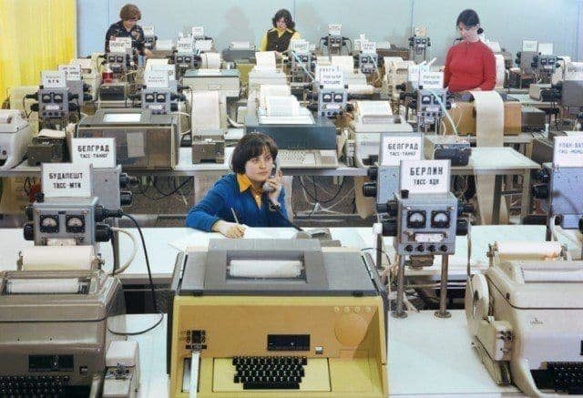 Телетайпный зал в здании ТАСС, 25 января 1978 года, Москва.