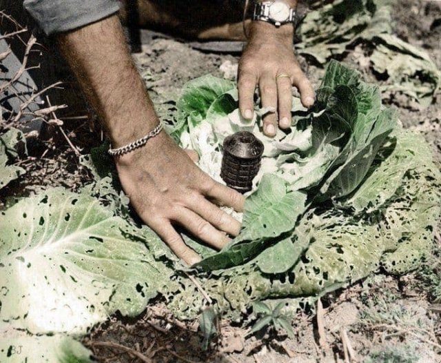 Мина, замаскированная под кочан капусты в Окинаве, 1945 год.