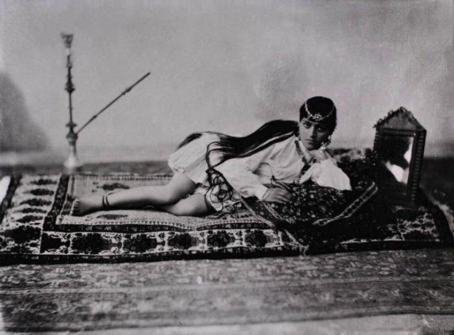 Портрет лежащей женщины с кальяном и зеркалом, 1901 год, Персия