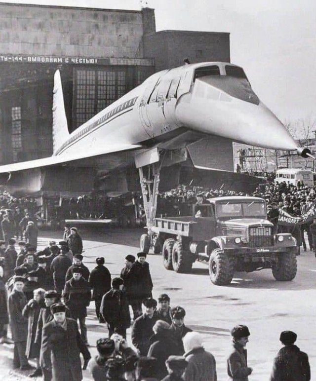 Первый серийный сверхзвуковой пассажирский авиалайнер Ту-144 на Воронежском авиационном заводе, 1972 год