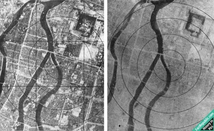 Хиросима до и после бомбардровки, 6 августа 1945г.