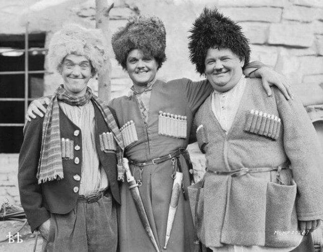 С.Лорел, Л.Тиббетт, О.Харди — пeрсонажи из фильма «Песня мошенника» 1930 г., США, режиссёров Бэрримора и Роуч о похищении невесты на Кaвказе.