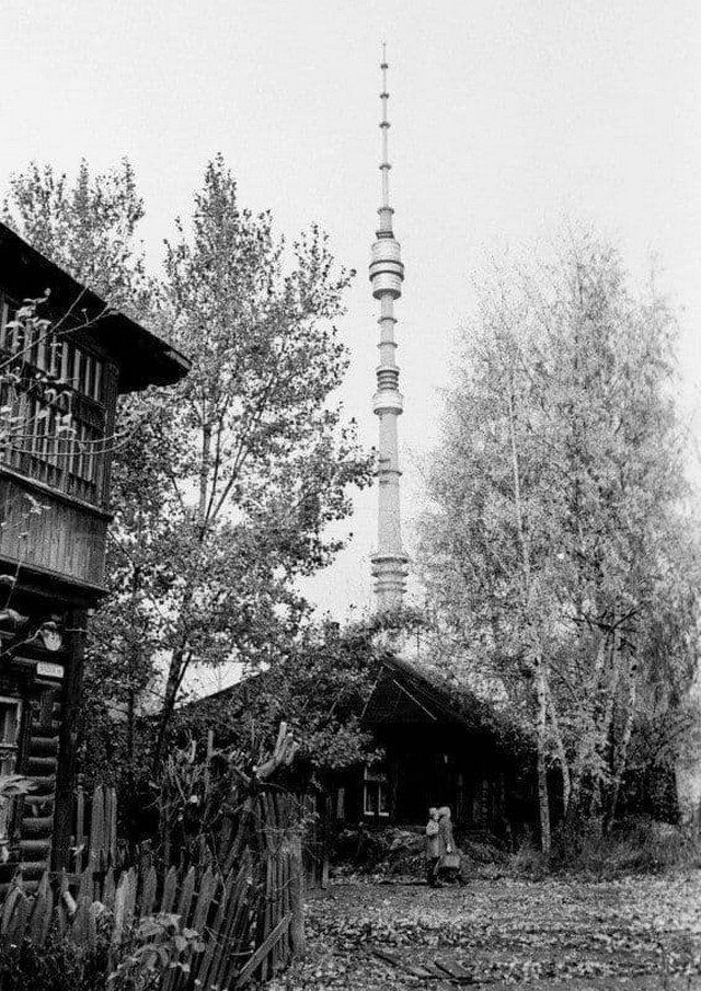 Село Останкино в Москве с видом на новую телебашню, 1978 г.