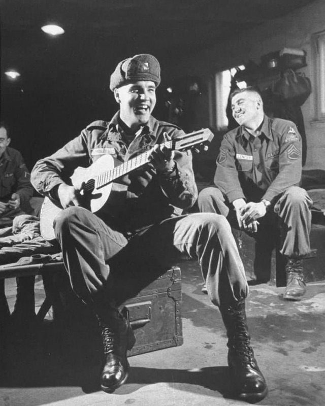 Элвис Пресли играет для своих однополчан, во время службы в армии, 1959 год.