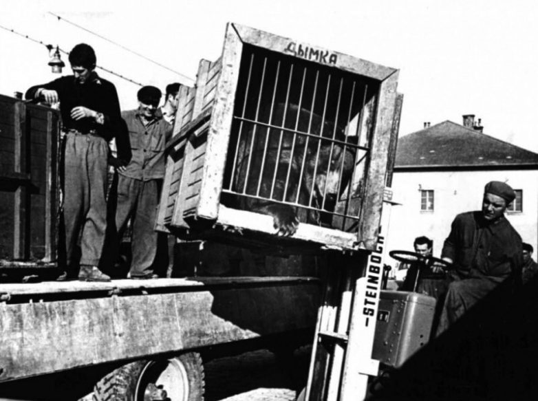 Медведь по кличке «Дымка» советского цирка в Вене. Австрия, 1958г.