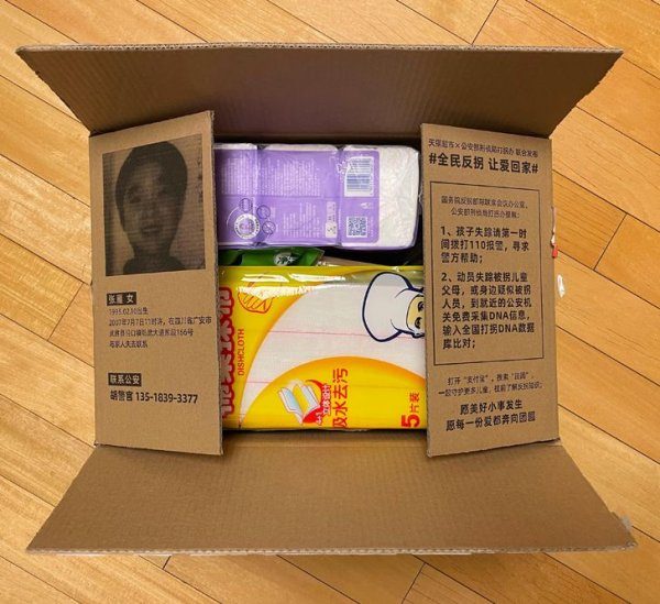 Китайская интернет-компания использует свои коробки в качестве листовок, сообщающих о пропавших без вести
