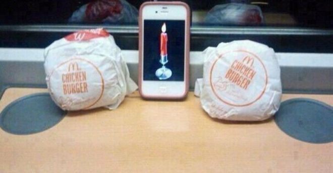 Современный ужин при свечах выглядит именно так. Даже если свечей восковых нет, всегда можно найти другой вариант