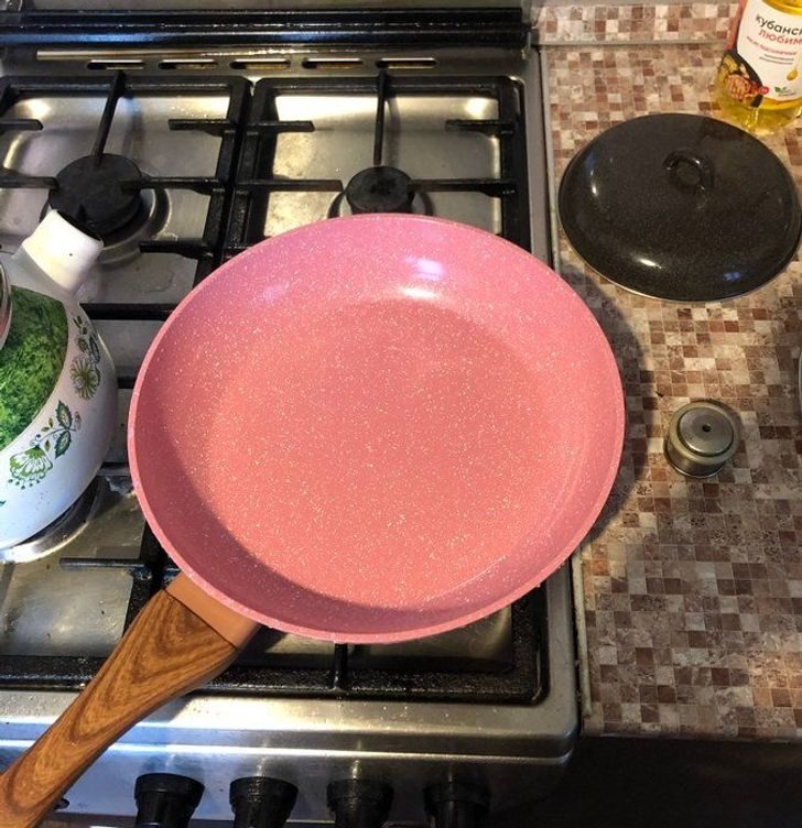 Оригинальная сковорода розового цвета. Нежность и ревность в одном флаконе.