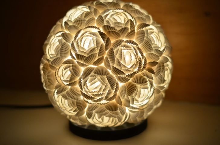 Настольная лампа с абажуром, выполненным из настоящих ракушек.