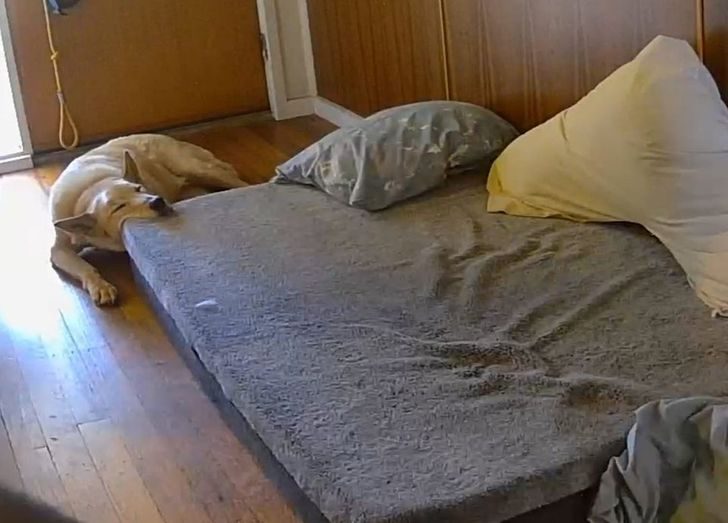 Все собаки любят грызть мебель, и эта — не исключение. Просто ее застали врасплох, и ничего не оставалось, как притвориться, что она спит