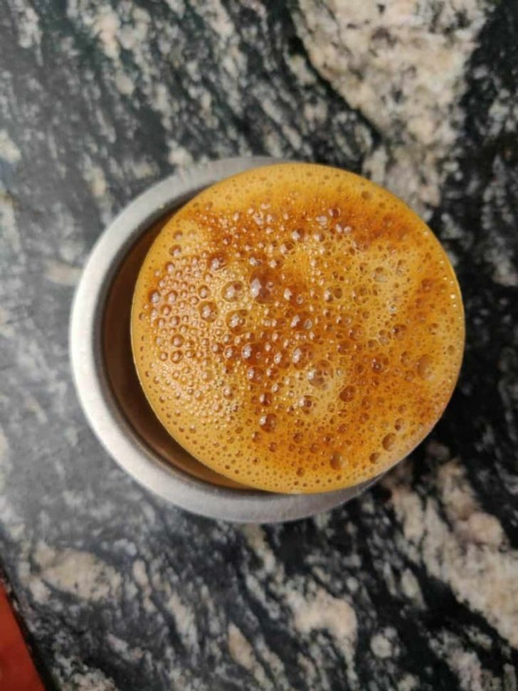 Кажется, что желтая штука на фото — печенье, но это не так. Просто кофе налито в кружке слишком много