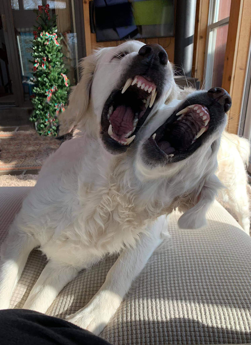 Не пугайтесь, это не собака-горыныч, а всего лишь две милые собачки, которые так удачно попали в кадр