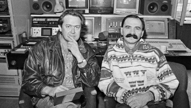 Юрий Стоянов и Илья Олейников на съёмках передачи «Городок» 1994 год.
