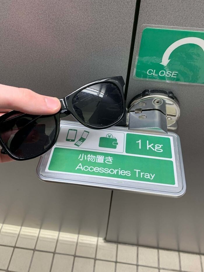 Полочка для мелочей в общественном туалете соединена с замком, чтобы посетители ничего не забыли в уборной