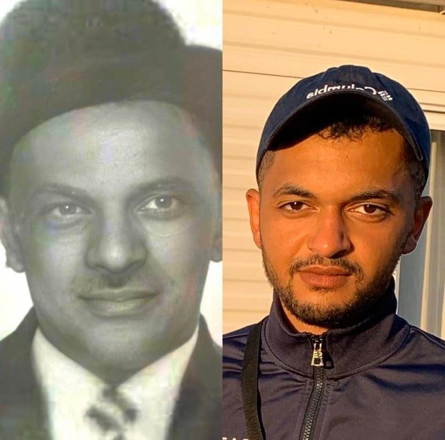 6. Слева современный парень в 2020-м, а справа его прадед в 1918 году