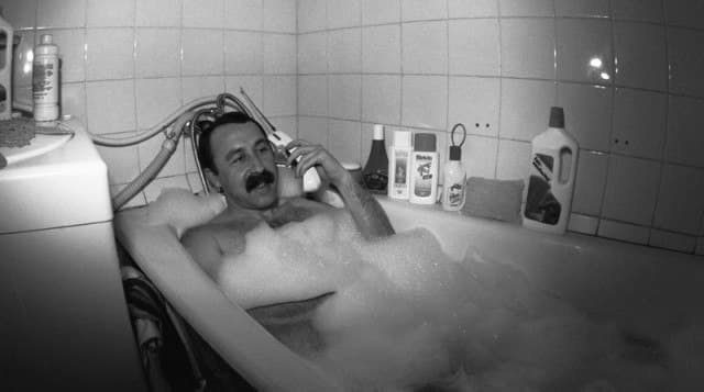 Тренер московского «Динамо» Валерий Георгевич Газзаев принимает ванну, 1992 год, Россия