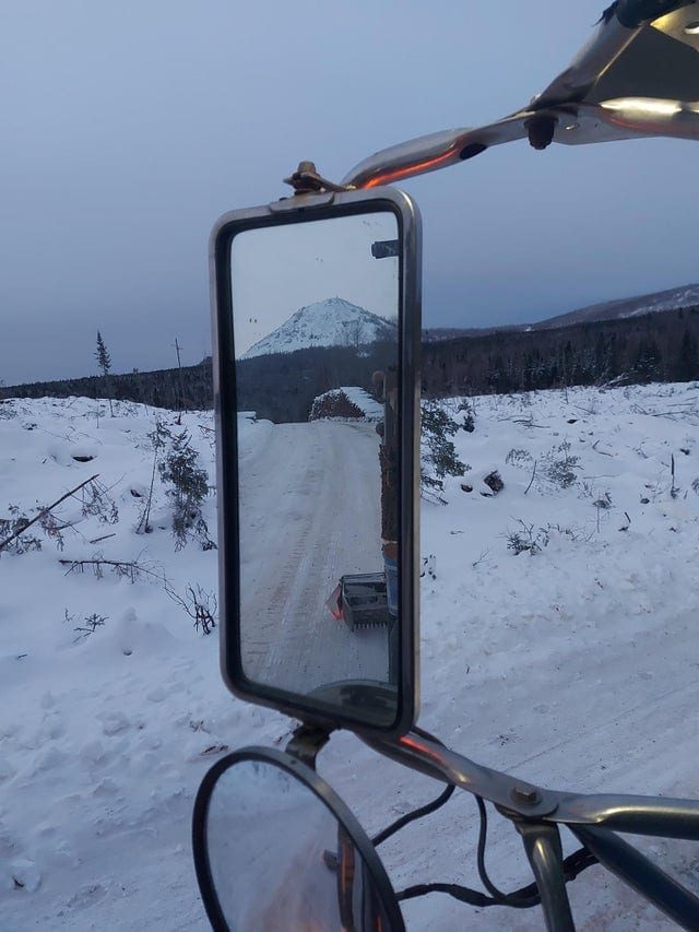 Отражение в зеркале заднего вида идеально вписывается в пейзаж