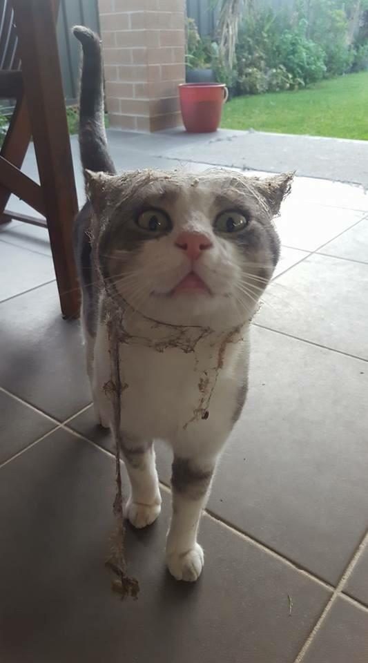 Котофей нагулялся и приходит с таким видом, как будто бы чистенький