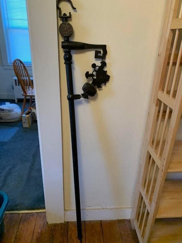 Ответ: «Это подвес, который крепится к потолку крюком вниз. Его вешают над очагом, а на крюк в последствии навешивают кастрюли, либо чайники, используя его для готовки. Распространен такой метод в Восточных странах»