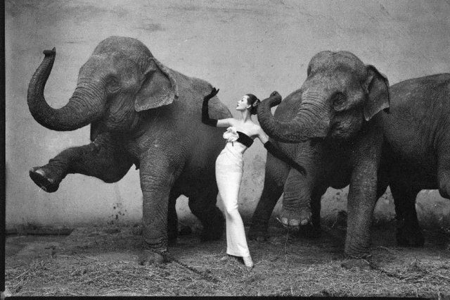 Снимок знаменитого американского фотографа Ричарда Аведона «Довима со слонами, вечернее платье от Dior», сделанный в 1955 году в Париже.