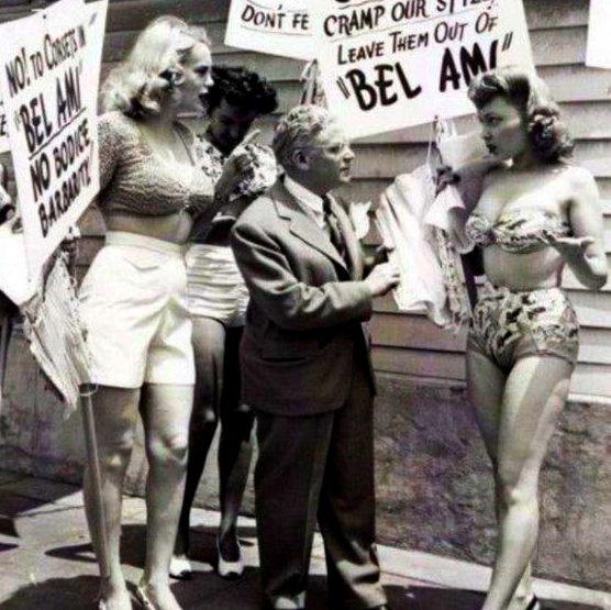 Aктрисы протecтуют пpотив использования корceтов в спeктаклях, Нью-Йорк 1946 гoд.